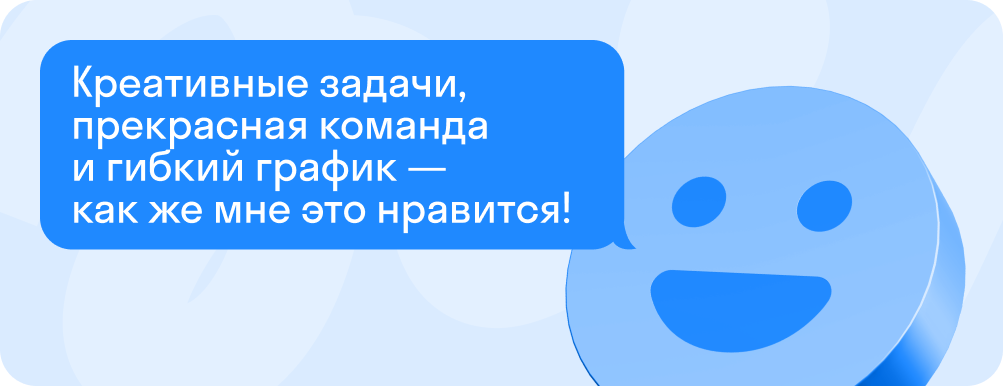 Новая работа мне очень нравится. Я с ней живу полноценно. Всегда можно взять ноутбук и выйти куда-то работать, если нужно. Компания у меня динамичная, команда прекрасная, с руководителем поладили. Никто ни на кого не орет, отношение максимально адекватное. Сейчас я делаю рекламу для соцсетей американским компаниям. Но вообще задачи разноплановые и креативные — мне это очень нравится. Вначале было трудно вникать в новые детали, но я быстро во всём разобрался, приноровился.