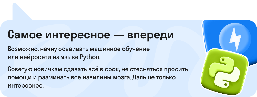Большинство наставников — очень крутые специалисты. Общительные и опытные. Мне запомнились трое: Дмитрий Шведов, Алексей Архипов и Глеб Кушедов. Они прям супер, спасибо им большое.