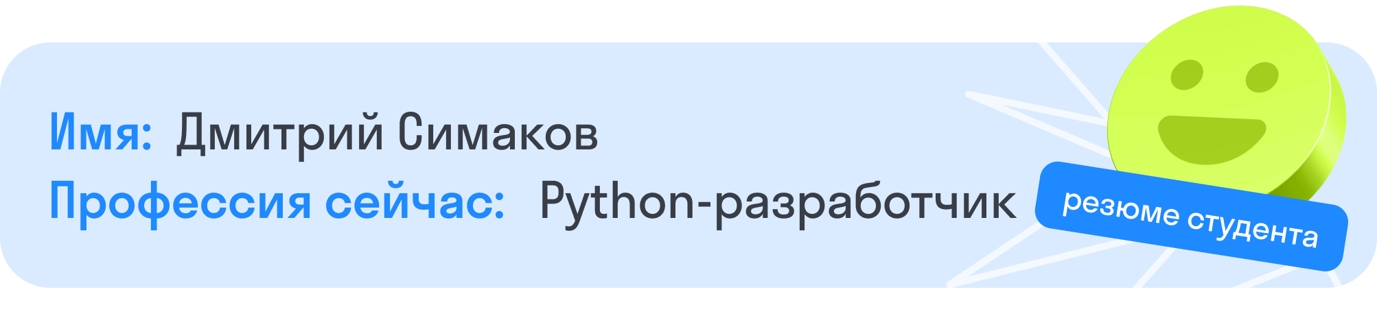 Skypro выбрал по отзывам, по деньгам и наполненности курса. Остановился на Python, потому что привлекла сфера обработки больших данных и машинного обучения в будущем. Увидел в этом перспективы.